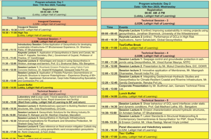 IIT Bhubaneswar organized a two-day workshop in collaboration with the International Geosynthetics Society (IGS), and the Indian Geotechnical Society, Bhubaneswar Chapter, on “ Hydraulic & Barrier Systems Using Geosynthetics” on November 11–12, 2025. The event brought together leading voices from academia and industry to examine how geosynthetics can support India’s infrastructure development in a rapidly changing climate.
