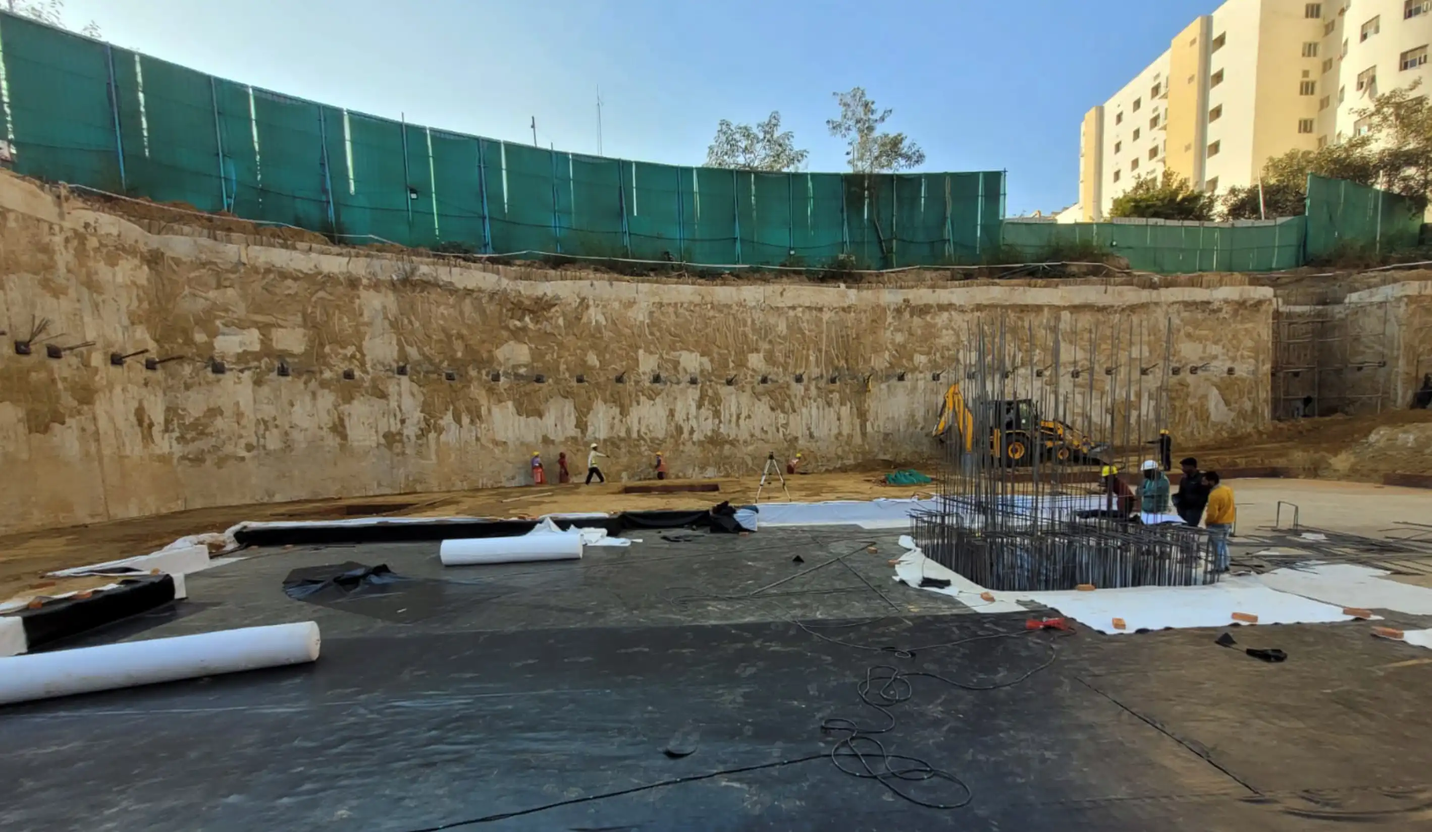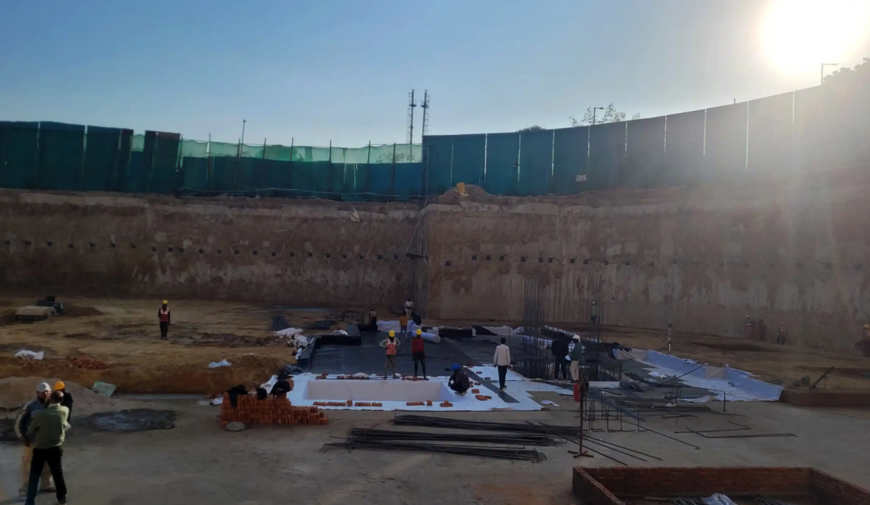For our ability to deliver a highly effective and durable solution for their substructure waterproofing requirements., NBCC required reliable & robust waterproofing treatment for sub-structure. The sub-structure design was based on EPDM membranes with Geotextile protection on both sides ensuring long-lasting performance in both waterproofing and durability. By utilizing the Mirai RubberPrufe-EPDM Membrane, we ensured long-term protection against water ingress, offering them Confidence and enhanced structural integrity.